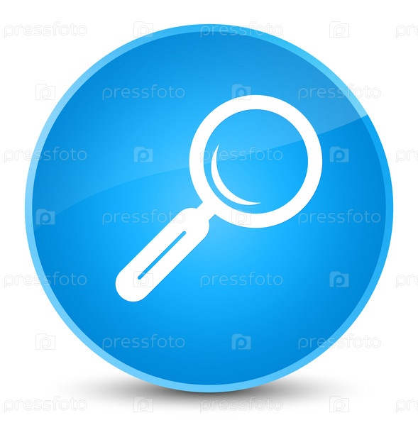 Икона увеличительного стекла - элегантная синяя цианская голубая круглая кнопка