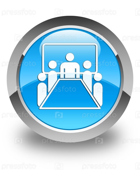 Икона комнаты совещаний блестящая цыановая синяя круглая кнопка