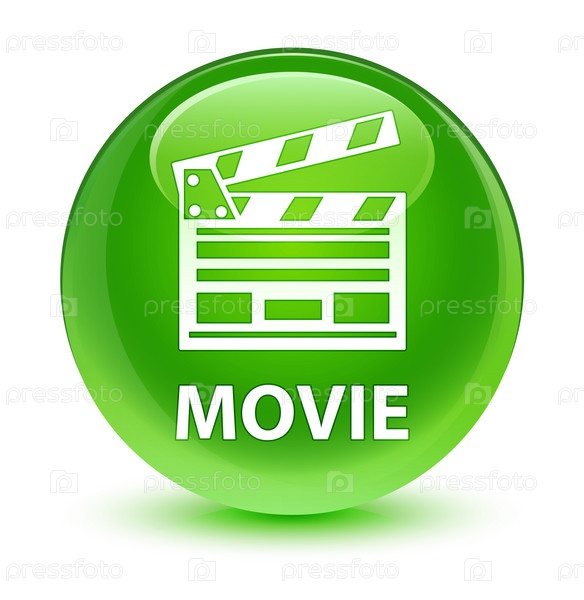 Фильм (икона клипа кинофильма) стеклянно-зеленая круглая кнопка