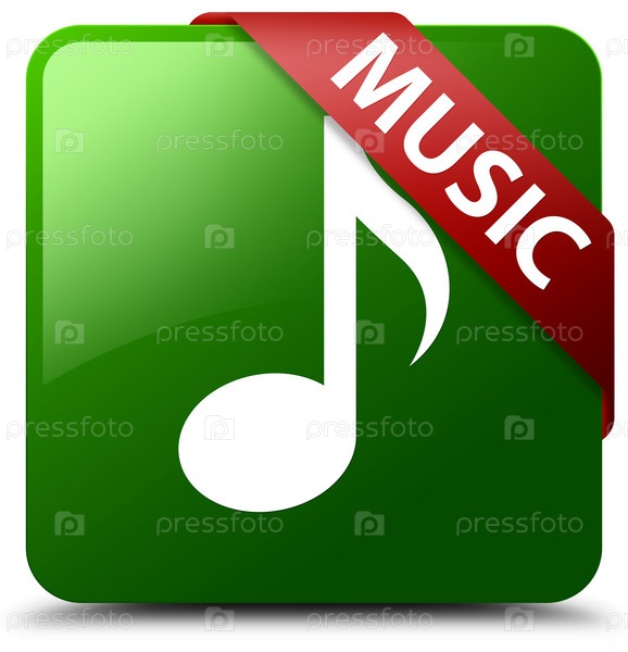 Музыка зеленая квадратная кнопка красная лента в углу