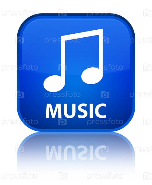 Музыка (икона мелодии) специальная синяя квадратная кнопка