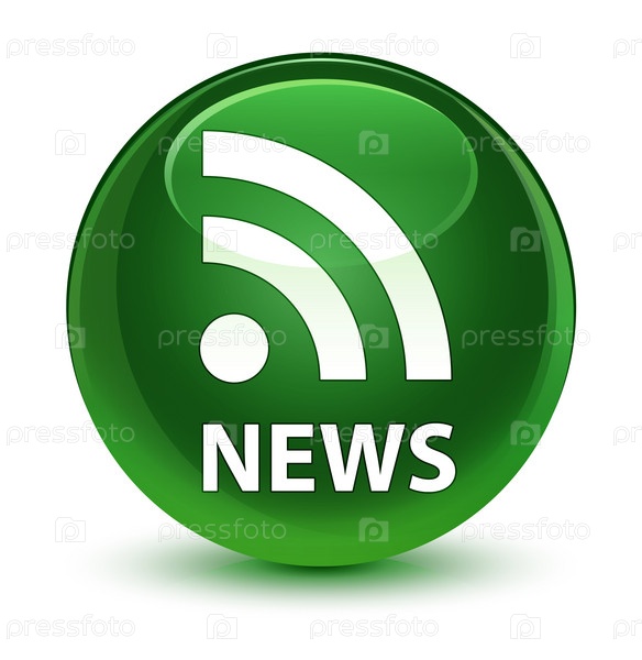 Новости (икона RSS) стеклянная мягкая зеленая круглая кнопка