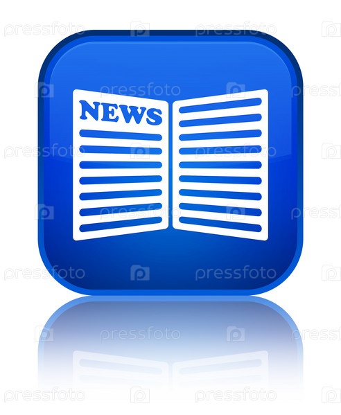 Икона газеты специальная синяя квадратная кнопка