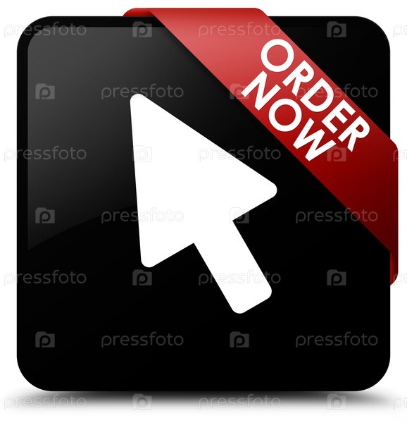 Закажите сейчас черный квадратный кнопка красная лента в углу