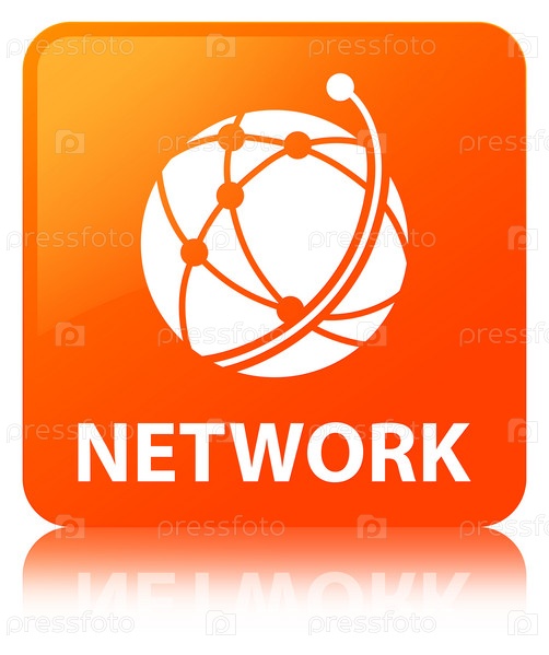 Сеть (икона глобальной сети) оранжевая квадратная кнопка