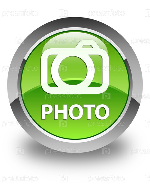 Фото (икона камеры) глянцевая зеленая круглая кнопка