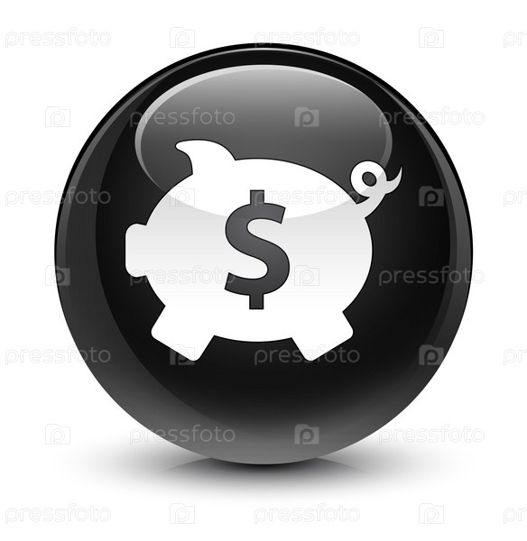Пигги-банк долларовый знак иконка стеклообразный черный круглый кнопка