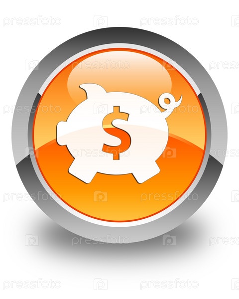 Пигги-банк долларовый знак икона блестящая оранжевая круглая кнопка