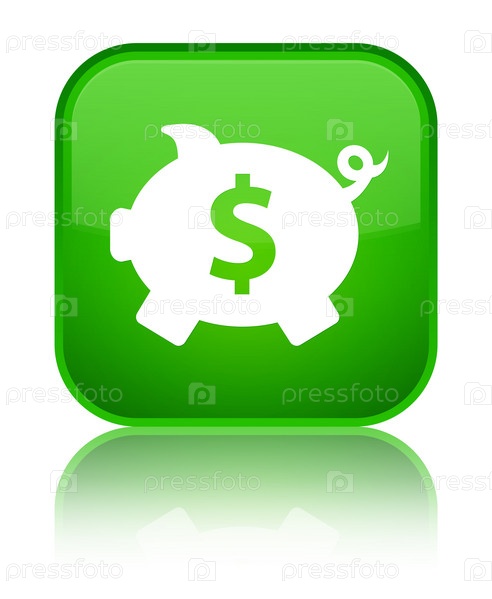 Пигги-банк иконка с символом доллара, специальная зеленая квадратная кнопка
