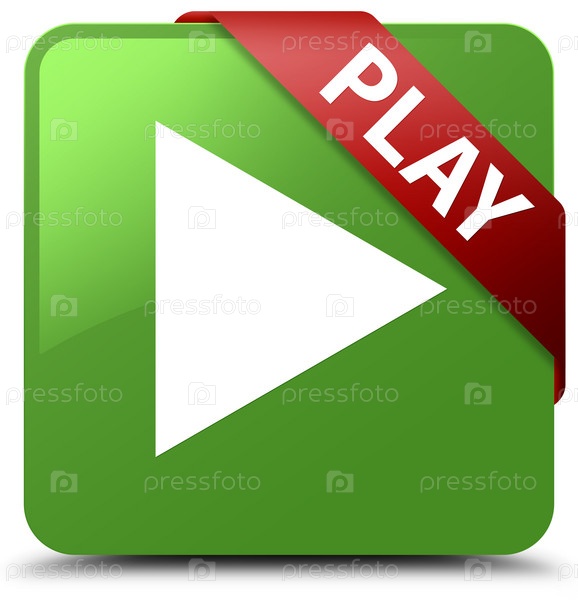 Играть мягкое зеленое квадратное кнопка красная лента в углу