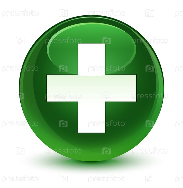 Иконка стеклянный мягкий зеленый круглый кнопка плюс