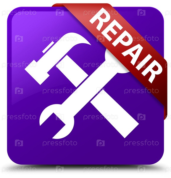 Ремонт (икона инструментов) фиолетовая квадратная кнопка красная лента в углу