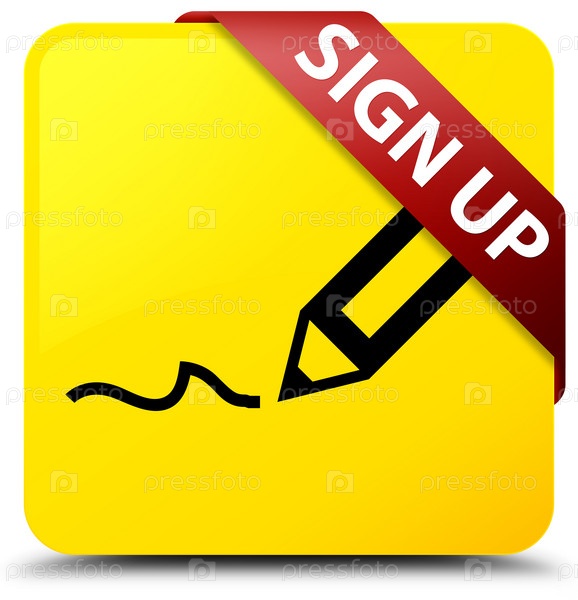 Зарегистрируйтесь желтый квадратный кнопка красная лента в углу