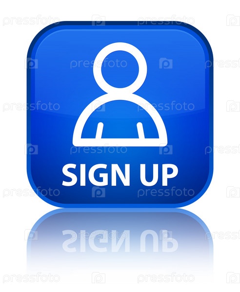 Зарегистрироваться (икона члена) специальная синяя квадратная кнопка