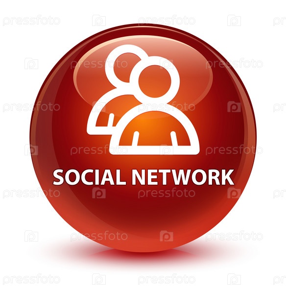 Социальная сеть (икона группы) стеклянный коричневый круглый кнопка