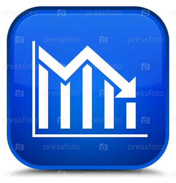 Икона статистики вниз специальная синяя квадратная кнопка