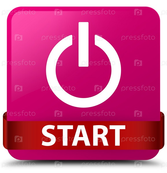 Старт (икона питания) розовая квадратная кнопка красная лента посередине
