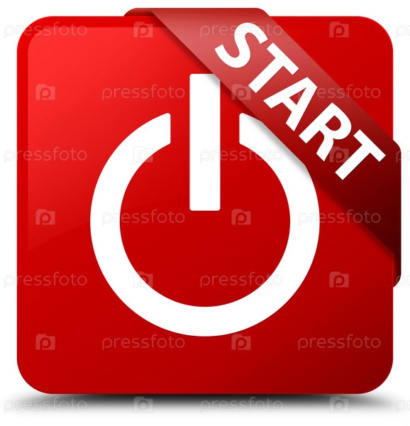 Старт (икона питания) красная квадратная кнопка Красная лента в углу