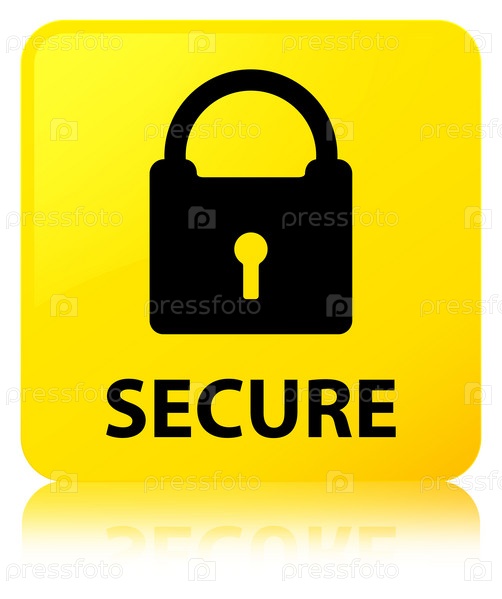 Безопасно (икона замка) жёлтая квадратная кнопка