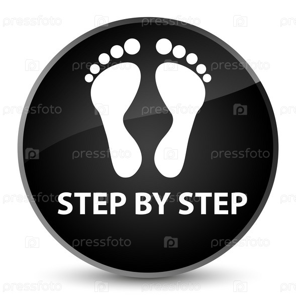 Шаг за шагом (икона отпечатков) элегантная черная круглая кнопка