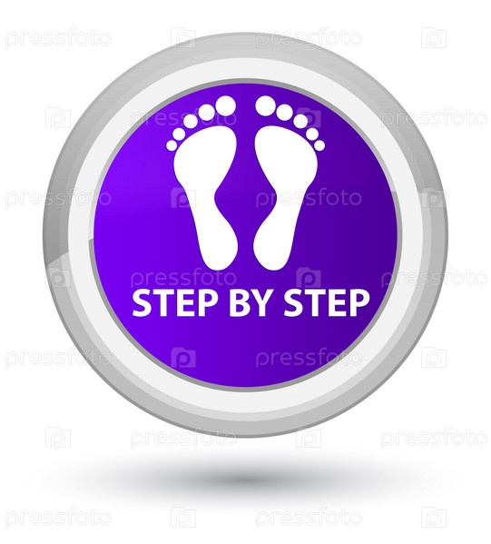 Шаг за шагом (икона отпечатков) первичная фиолетовая круглая кнопка
