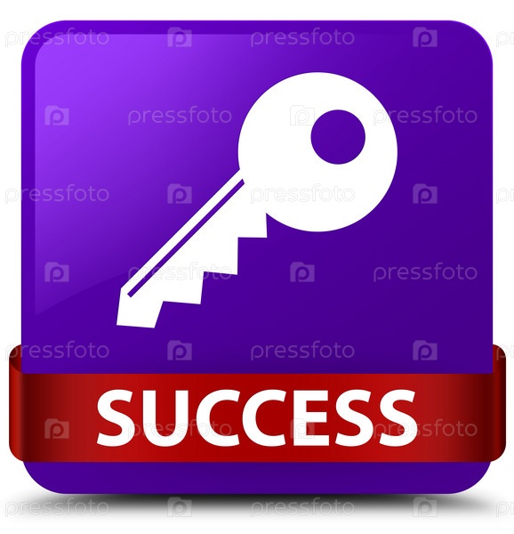 Успех (икона ключа) фиолетовая квадратная кнопка красная лента посередине