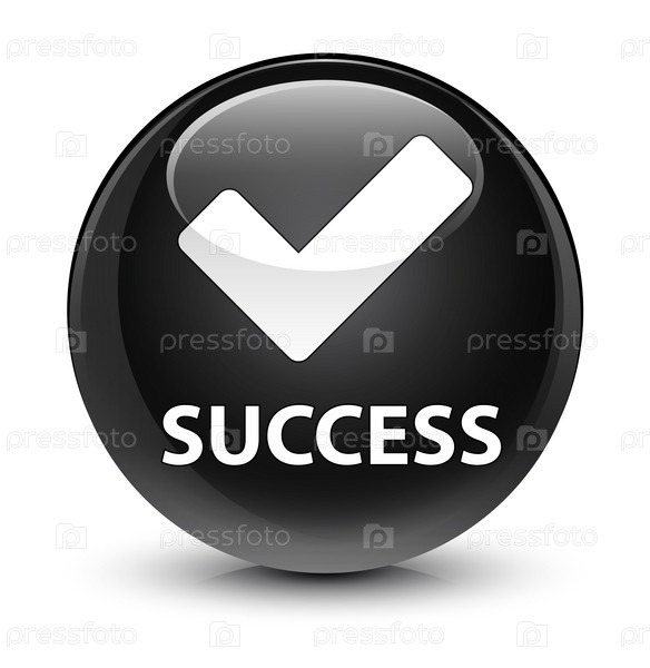 Успех (икона проверки) стеклянная черная круглая кнопка