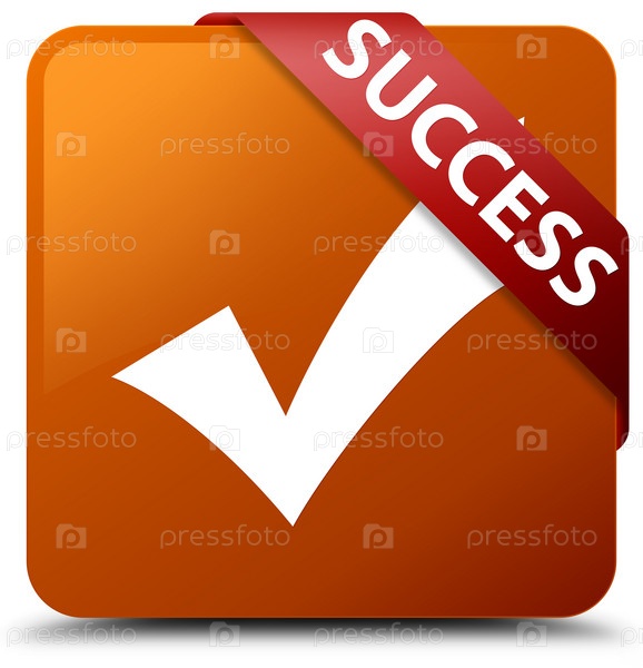 Успех (икона проверки) коричневая квадратная кнопка красная лента в углу