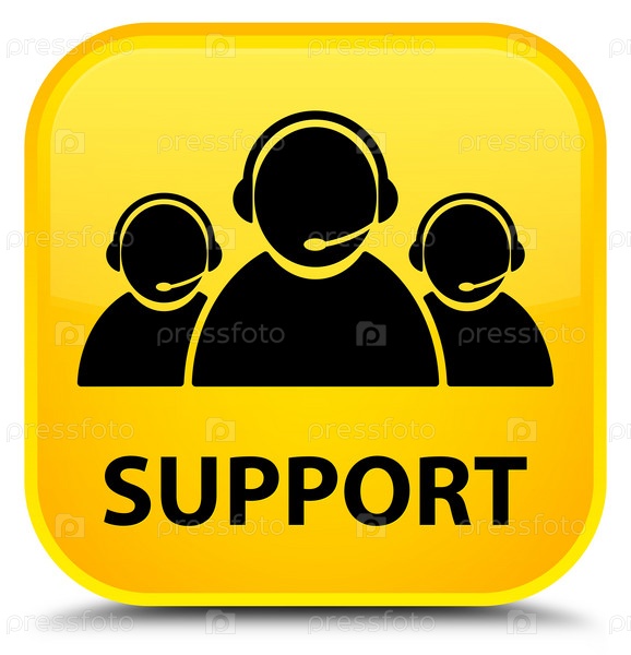 Поддержка (икона команды по уходу за клиентами) специальная желтая квадратная кнопка