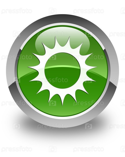 Икона Солнца глянцевая мягкая зеленая круглая кнопка