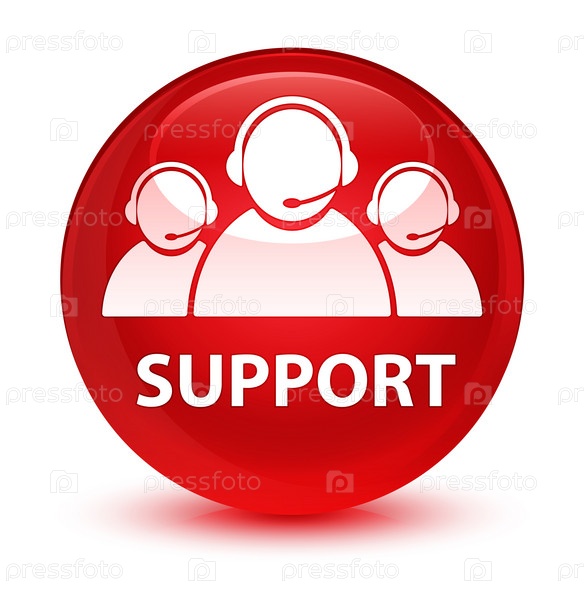 Поддержка (икона команды по обслуживанию клиентов) стеклянная красная круглая кнопка