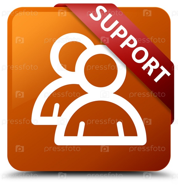 Поддержка (икона группы) коричневая квадратная кнопка красная лента в углу
