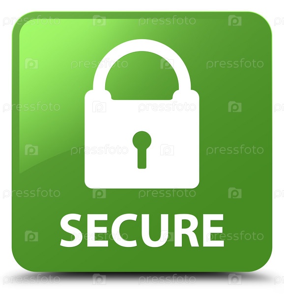 Безопасно (икона замка) мягкая зеленая квадратная кнопка