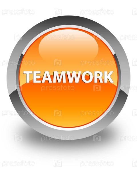 Командная работа блестящая оранжевая круглая кнопка