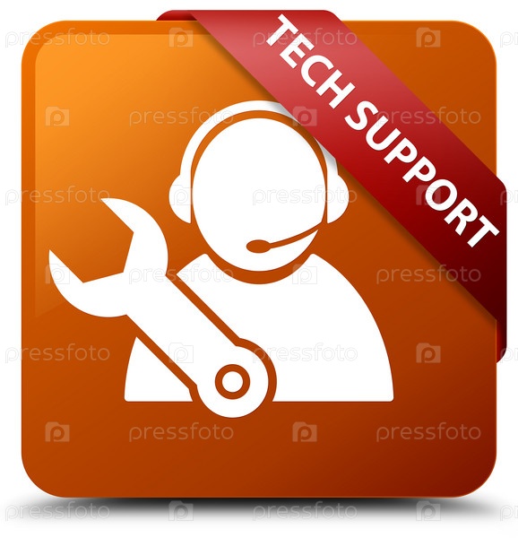 Техническая поддержка коричневая квадратная кнопка красная лента в углу