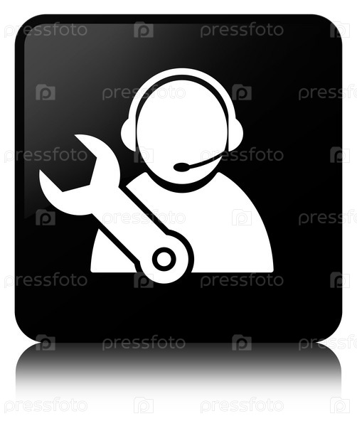 Икона технической поддержки черная квадратная кнопка