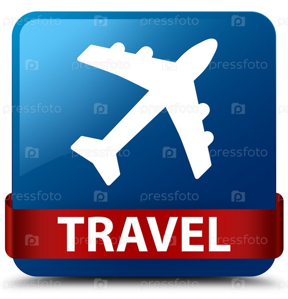 Путешествие (икона самолета) синяя квадратная кнопка красная лента посередине