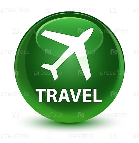 Путешествие (икона самолета) стеклянная мягкая зеленая круглая кнопка