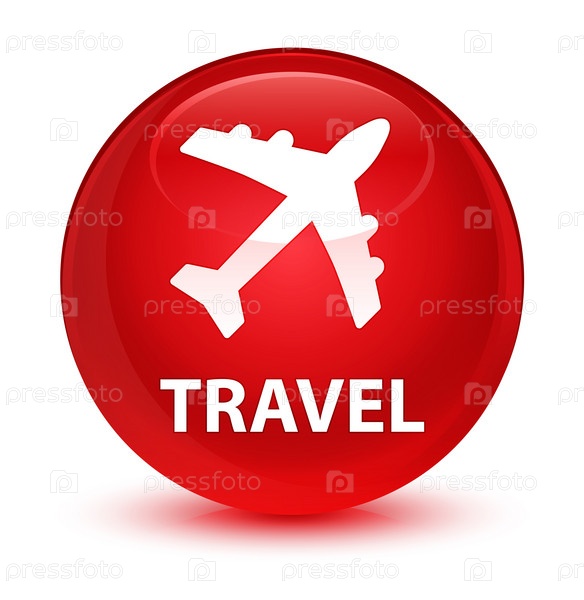 Путешествие (икона самолета) стеклянная красная круглая кнопка
