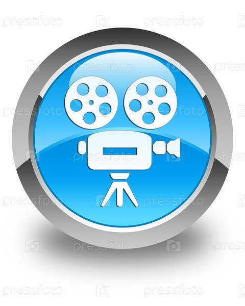 Икона видеокамеры глянцевая синяя синевая круглая кнопка