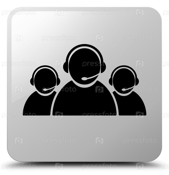 Икона команды обслуживания клиентов белая квадратная кнопка