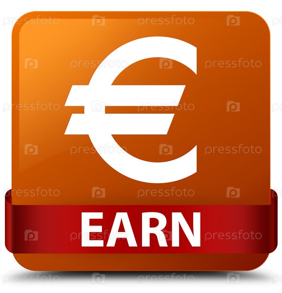 Заработать (знак евро) коричневая квадратная кнопка красная лента посередине