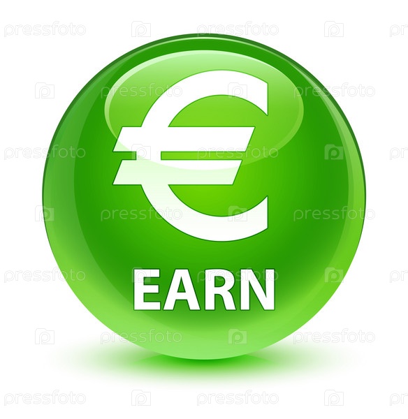 Заработать (сигнал евро) стеклянный зеленый круглый кнопка