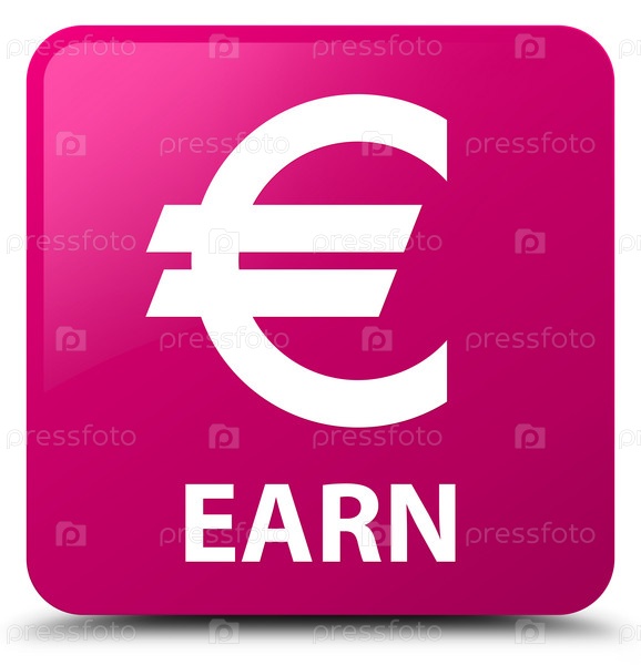 Заработать (знак евро) розовая квадратная кнопка