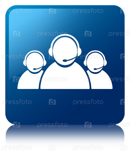 Икона команды обслуживания клиентов синяя квадратная кнопка