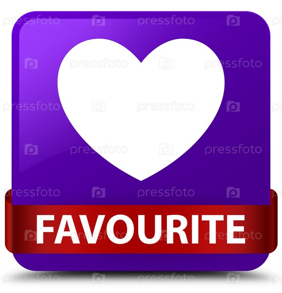Любимая (икона сердца) фиолетовая квадратная кнопка красная лента посередине