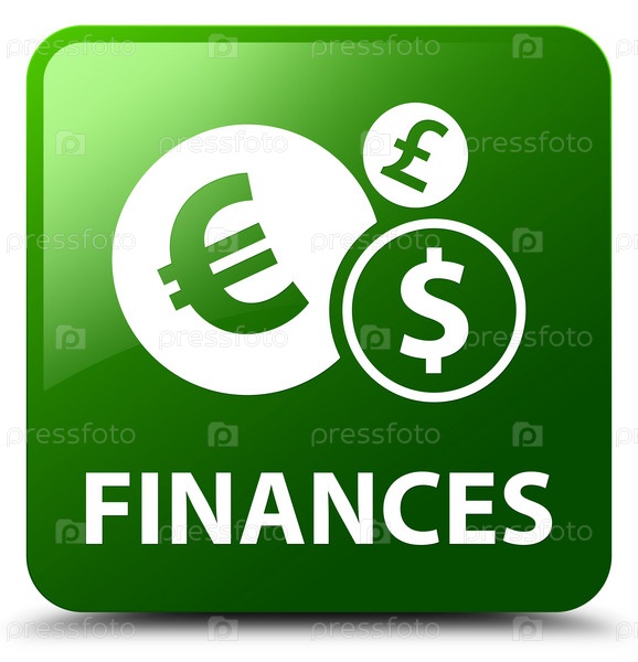Финансы (знак евро) зеленая квадратная кнопка