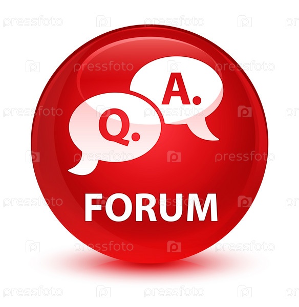 Форум (икона пузыря вопросов и ответов) стеклянная красная круглая кнопка