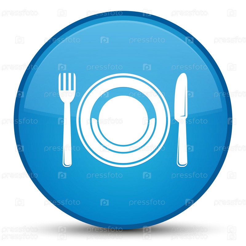 Икона пищевой тарелки - специальная циан-синяя круглая кнопка