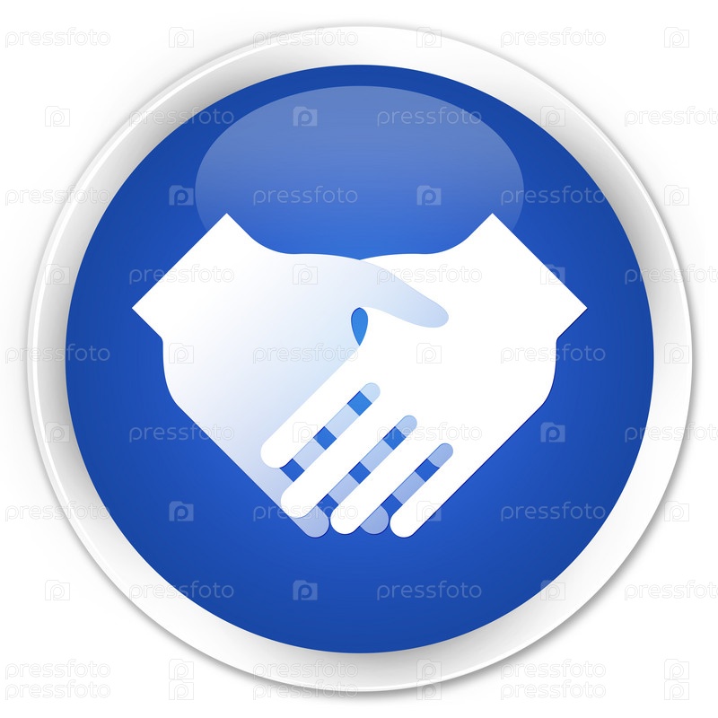 Икона рукопожатия премиум синяя круглая кнопка